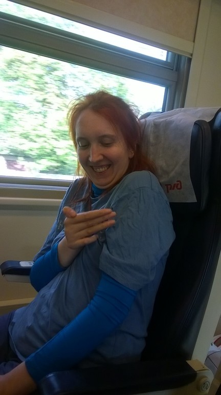 Приехали на вокзал, немного постояли осмотрели окресности, и пошли на поезд. В поезде нам понравилось. Одно но, сидячие кресла сильно не опускались, а у нас уже так сильно у всех болела пятая точка!)))) Нас там покормили, был вай фай. Супер короче)