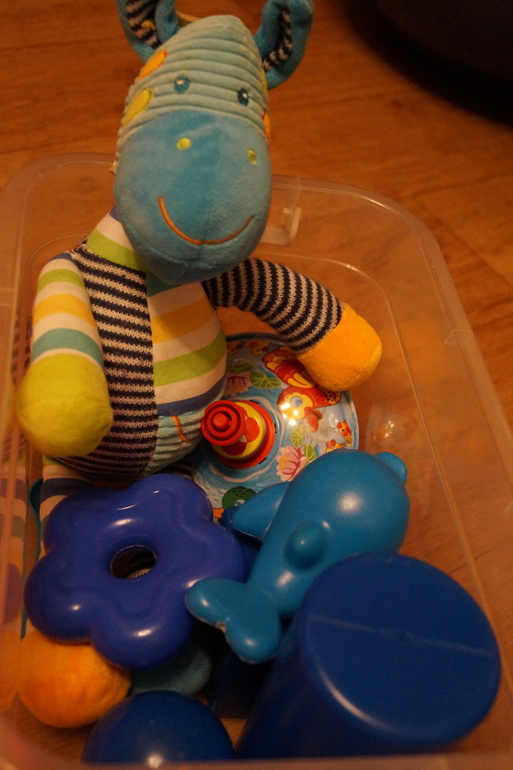 Вновь синие предметы, а потом разделение игрушек из другой емкости на твердые и мягкие. Повторили обитателей воды. Попытались поиграть в мемори (к этому дню игра немного надоела, хотя каждый раз я брала новые карточки). Затем рассортировали бигуди в баночки. Три бигудюшки - три баночки - найди домик для каждой.