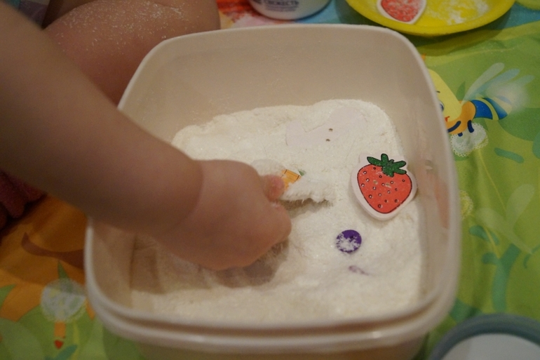 Затем мы поиграли с пособием ШСГ и заполнили баночку фиолетовыми витаминами для детей.