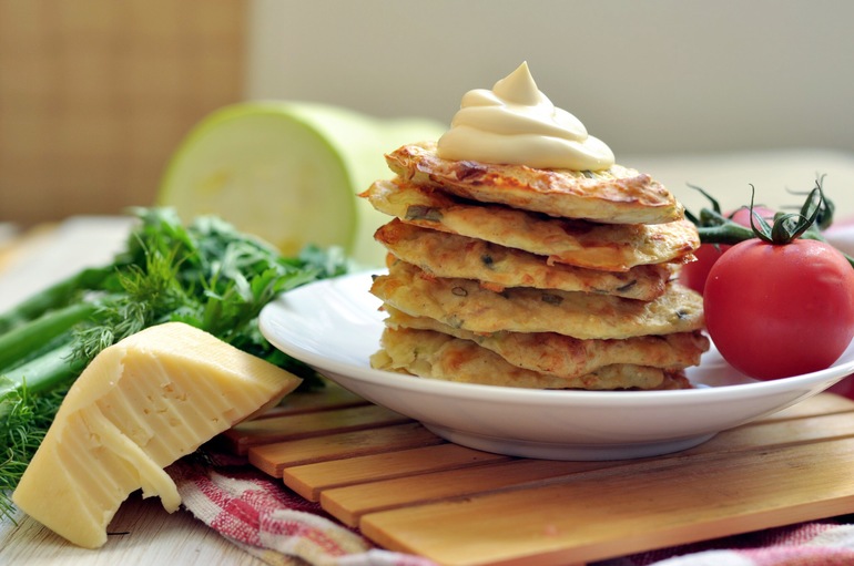 Кабачковые оладушки с курицей
