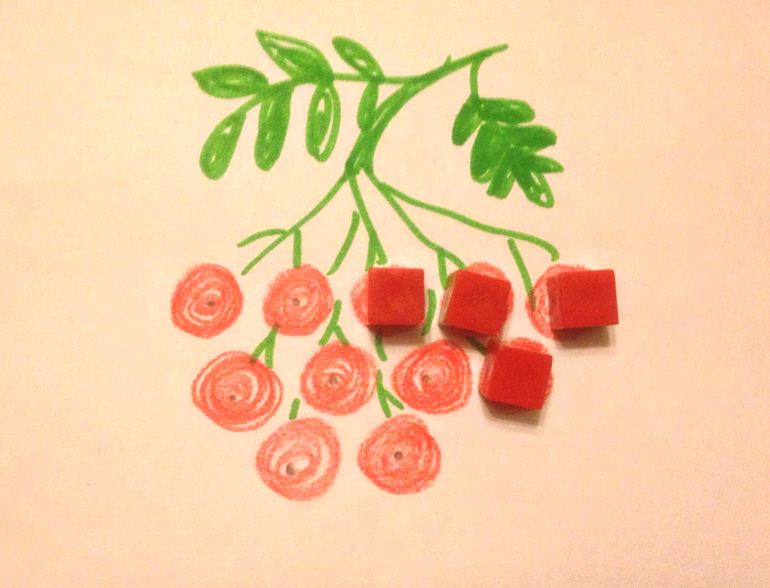 Снегирь питается рябиной и семенами. Делаем ему рябинку кнопками.
