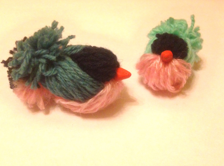 Накануне вечером я сделала из ниток двух птичек. Делаются очень быстро, и можно повесить на елку.