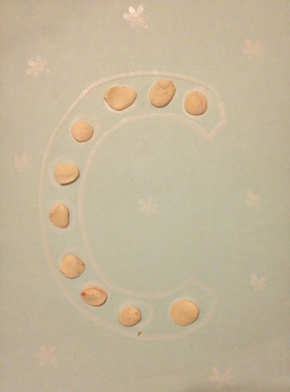 Начинаем потихоньку с Тимошей учить буквы. Буква С пластилином. (фотка получилась очень бледная, ничегошеньки не видно)