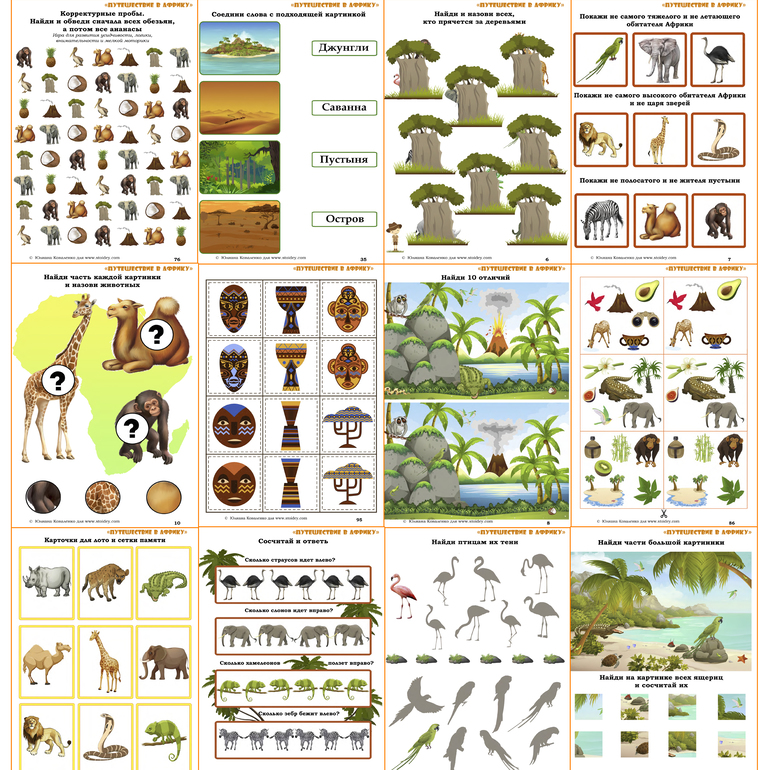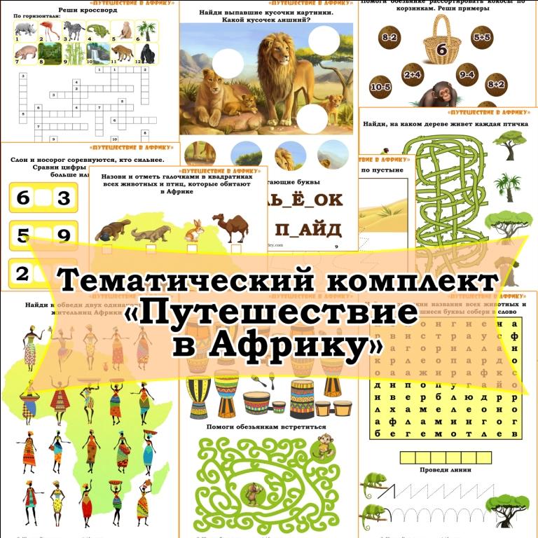Наступила летняя пора - время поездок и путешествий. А если вы с ребенком остаетесь дома - не беда! Предлагаем вам поиграть и отправиться на самый жаркий континент планеты - в Африку. А чтобы путешествие получилось увлекательным и познавательным, возьмите с собой тематический комплект "Путешествие в Африку".