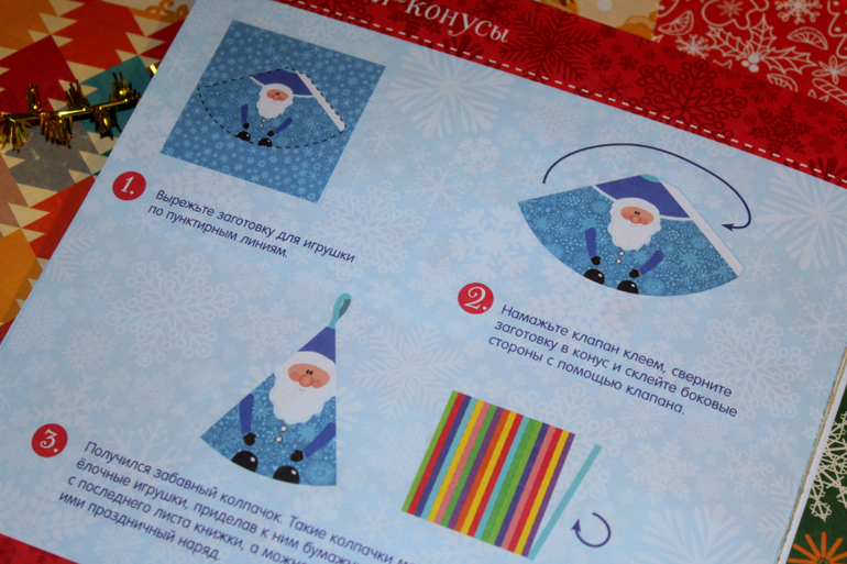 Предложила ей цветную бумагу, но пока её это что-то не вдохновляет. Она вовсю продолжает делать поделки из тетради! Отщелкала для вас содержание. Настёна сделала гирлянду, вырезала две маски, вот только я забываю купить резиночки для них, еще она сделала несколько подвесных звёздочек, игрушки конусы и в процессе шарики и объемная снежинка. Радует разнообразие новогодних принтов на заготовках, понравилось, что почти все поделки дочка смогла сделать самостоятельно и просто отлично, что занятий ребёнку хватает на несколько дней! Тетрадь получает от меня высший балл! 👍