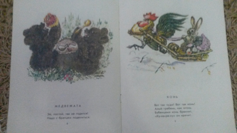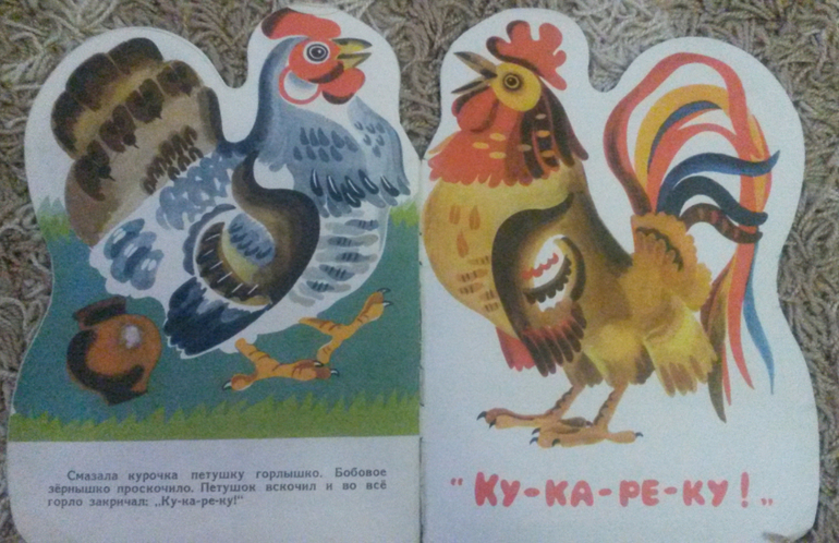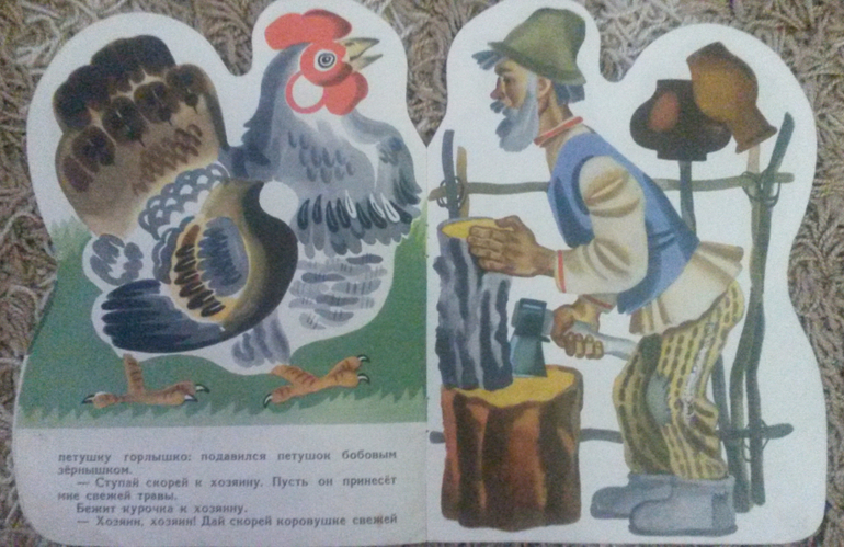 А эта книжка как-то не впечатлила дочу. Не знаю,почему?Хотя в моем детстве эта книга вызывала у меня восторг. В общем, сказку про петушка читаем только в сборнике.Эту книжку только рассматриваем.