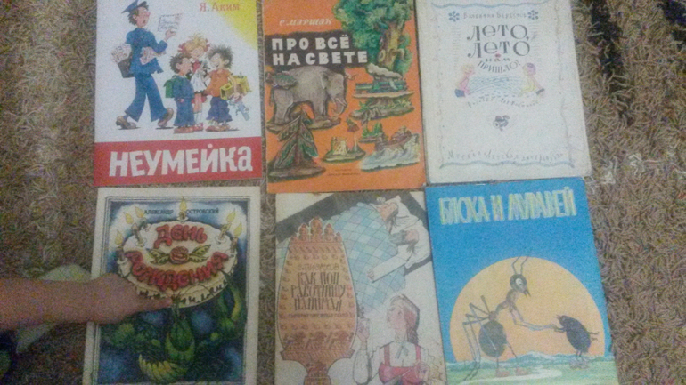 Как-то свекровь,увидев меня,как я перебираю у неё советские книжки,удивилась:"Зачем тебе этот хлам?"-"Что Вы?Это сокровище,у Вас тут просто залежи с советских времён!!!!"."Да?А я хотела всё это выкинуть.Подумала,что дети все выросли,внуки такие книжки не будут читать...". "Даже не думайте выкидывать,мы будем приезжать и каждый год перебирать Ваши книжки!!!"