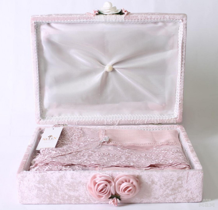 Шикарная Скатерть с кружевом в подарочной шкатулке розовая и кремовая бежевая