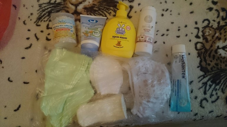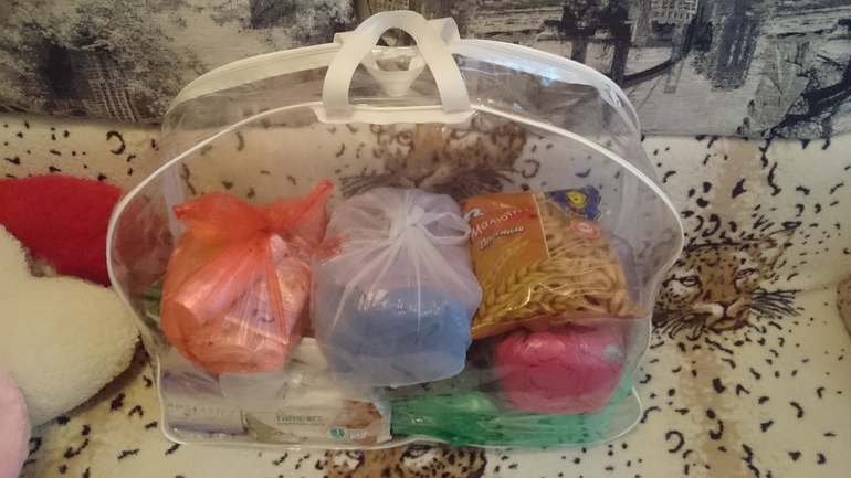 - Косметичка (крем д/ лица,ватные диски,ватные палочки,бальзам для губ,расчёска,резинка,пилочка,ножницы,декоративка)