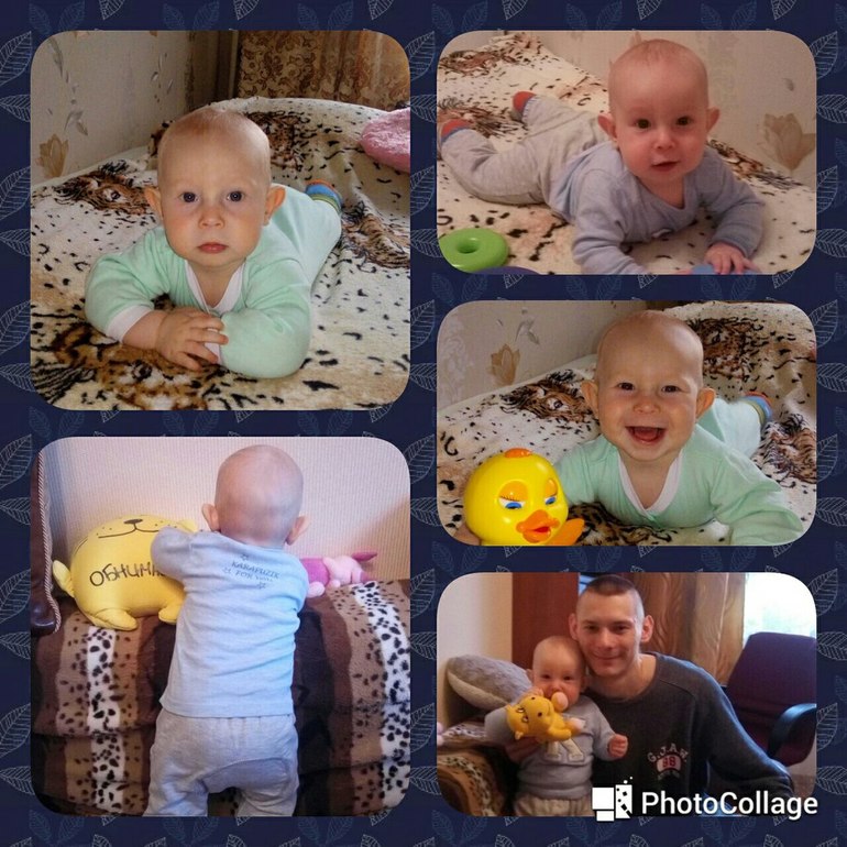 Поменяли размер одежды с 68 на 72.К педиатору ещё не ходили,поэтому вес-рост не знаю пока.Кушаем пюрешки,творожок,каши и мамино молочко.Любит фруктовые пюре и творожок,а овощные самые не любимые.Второй зубик у нас почти вылез.Режим сна и бодроствования немного поменялся:теперь спим два раза дома,а на улице очень редко.Очень люблю своего мальчишечку,с каждым днём всё сильнее!