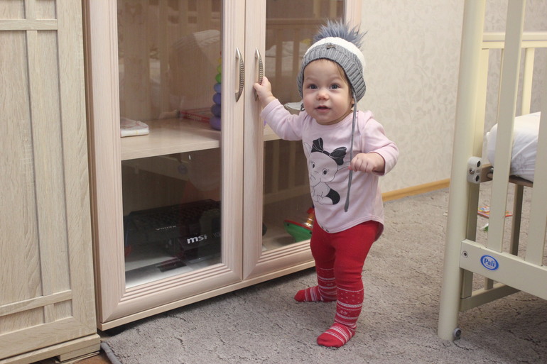 В этом месяце мы наконец-то стали кататься на машинке. Ребёнок в восторге. И возить ходунки-каталку, но я её придерживаю, чтоб не перевернулась. Стоит у опоры,держась одной рукой. Когда моем попу, пытается сбить ногами все что стоит на раковине. Сует свои руки куда только можно. Полюбила есть землю из цветка, если не успел её оттуда убрать)Утром, если просыпается тихо, а я ещё сплю, то обязательно начинает засовывать свои пальцы мне в нос!! Это невыносимо))Вот откуда, откуда такая привычка)) А в последнее время стала играться с нами, кусая за нос. Но не сильно, а просто иногда губы прикладывает,и улыбается так хитро😀Как-то вечером я ей показывала картинки в книжке, и сказала, что колобок прыгнул лисе на носик,и она тут же полезла кусать меня за носик😀Вот не показывает ничего, но после этого у меня нет сомнений, что ребенок все понимает. Просто не хочет она показывать, когда просят. Стала танцевать, раскачиваясь из стороны в сторону. И появился жест качать головой, как нет. Когда спрашиваешь да, всегда повторяет да. Исключения если только уж слишком занята. Как-то пробовали мы пересесть в прогулку, и сходить на площадку, покататься на качелях. Но ляле это не зашло. Страшно ей на них пока. И мы решили не будем до весны экспериментировать, и покатаемся в люльке на сон до весны.