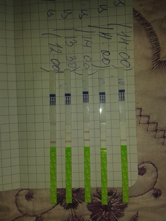 Первый раз делаю тесты на Овуляцию цикл 29-32дня начала делать с 10дц,думала у меня овуляция будет на 16-18дц а тут тесты уже яркие)посмотрите Пожалуйста это оно???или завтра ярче будет. И когда на мужа набрасываться???