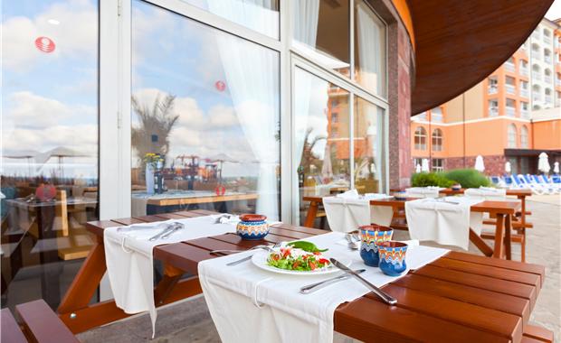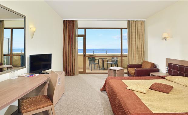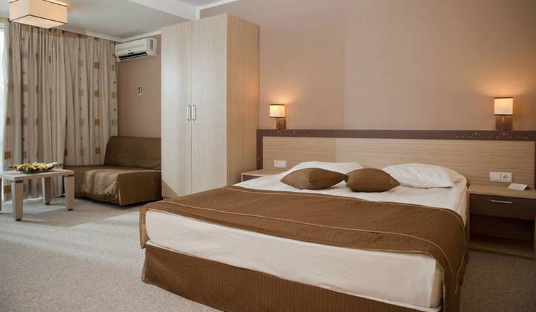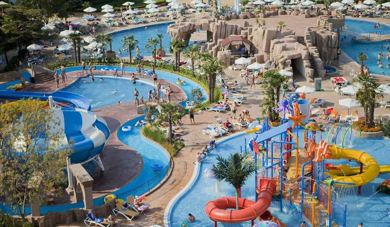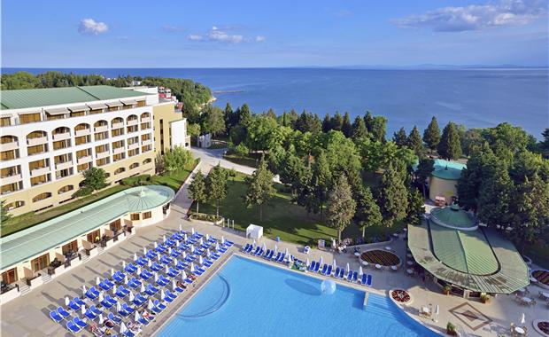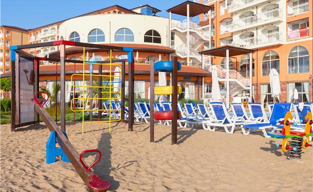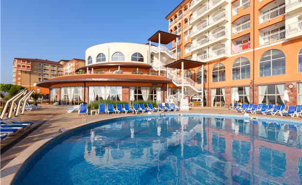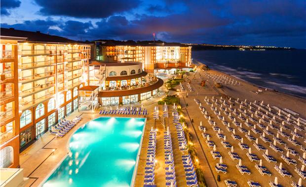 Современный гостиничный комплекс, расположенный в тихом живописном месте на берегу моря, идеально подходит для семейного отдыха. Разнообразное питание, удобные номера, анимация и аквапарк. Расположен в 2,5 км от города Обзор, между Бургасом и Варной (65-70 км до аэропорта). Очень популярный семейный отель, один из лидеров бронирования! Шезлонги и зонтики на пляже бесплатные.