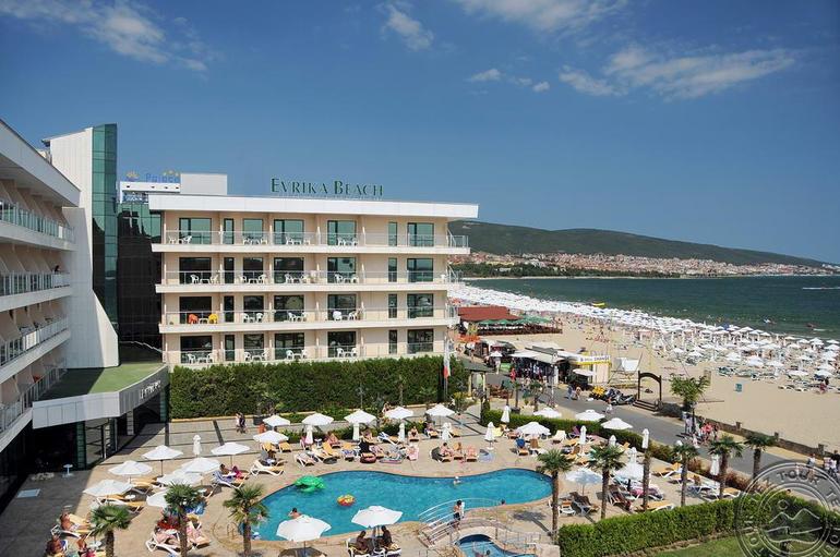 Находится в северной части курорта Солнечный берег, в тихом местечке. На первой линии, в 5 км от г.Несебр, в 35 км от аэропорта Бургаса. Отель имеет собственный аквапарк на территории. Пляж хороший, чистый, с идеальным заходом и мелководьем. Гостям отеля предлагается участок с бесплатными шезлонгами и зонтами.