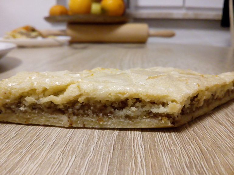 Получается невероятно вкусно... сверху и снизу нежное, рассыпчатое тесто, орехово-апельсиновая прослойка и ароматная апельсиновая глазурь.