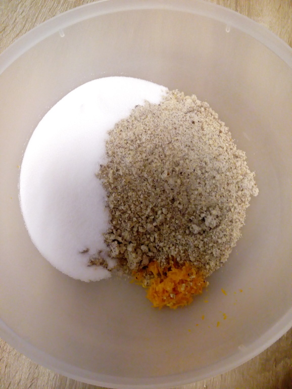 Прослойка у нас будет из орехов (400гр) цедры двух апельсинов 200 гр сахара и сока двух апельсинов.