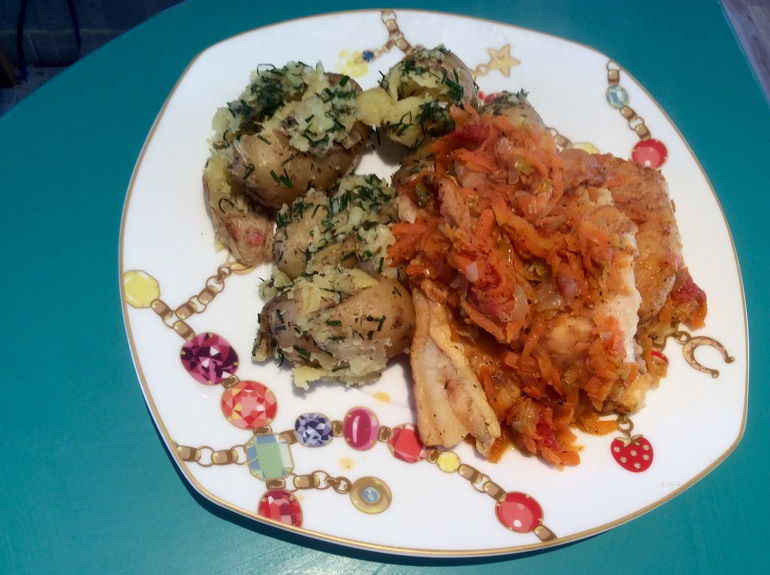 Не знаю, насколько эта тушеная рыба с морковью по-гречески относится к греческой кухне, но в моей польской семье ее готовят часто.