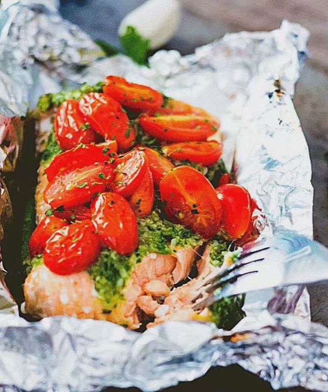 ...был бы скучным, и "как всегда", если б не был под шубкой из salsa verde. А так получилась рыбка вкусная, ароматная, и глаз радует !