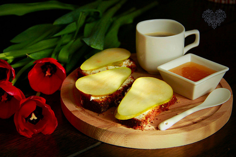 А вы уже позавтракали? Я к вам с наивкуснющим и простеньким бутербродиком из овсяного маффина, сыра маскарпоне хорошеньким слоем, медом и грушей.....волшебно!!!