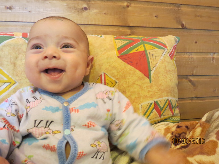 С каждым днём сын все удивляет и удивляет. И весь в папу(от и до,все говорят как близнецы), вроде ещё совсем маленький, а уже о чем то разговаривает на своём детском языке))), лежать на месте это не для него,пвтаеться уже сам сидеть,уже сам перевочиваеться,и ползает по кровати. С каждым днём не могу на радоваться моему маленькую чуду.