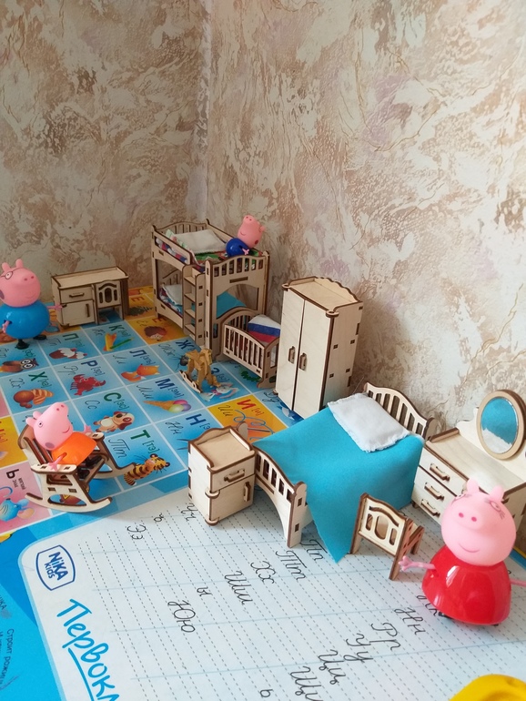 Мебель ваще огонь, и очень крепкая, я думала разваливаться будет, ан нет! Рекомендую. У меня муж был категорически против подобных игр, когда Никита был маленький, а к Платону уже по другому относиться. И на танцы ему можно идти и в семью поиграть... На авито такую мебель можно если что купить. Один набор 250-300 стоит. Здесь у меня 2 набора (спалтня и детская)