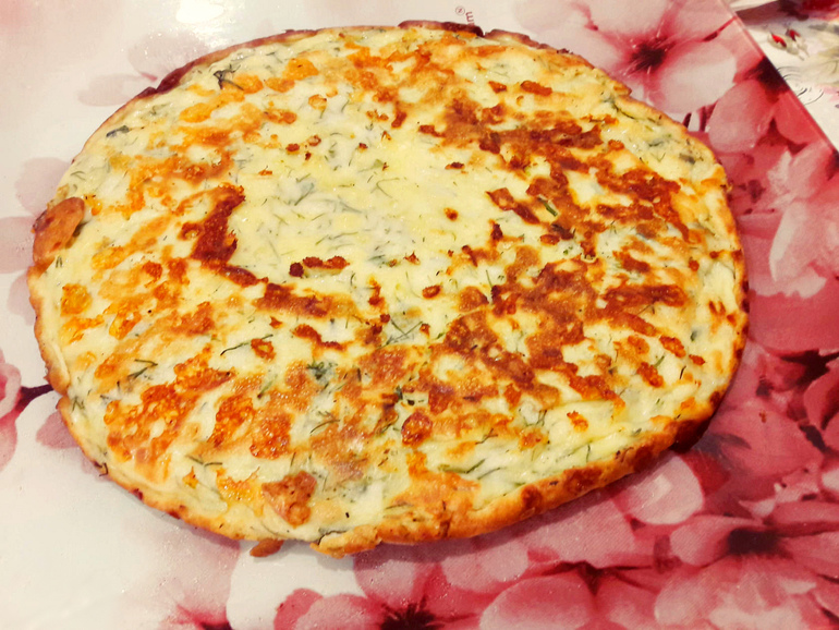 Выкладываем полученную массу на сковороду,предварительно смазав ее растит.маслом,и обжариваем с двух сторон примерно 10-12 минут)Наш ленивый хачапури готов!