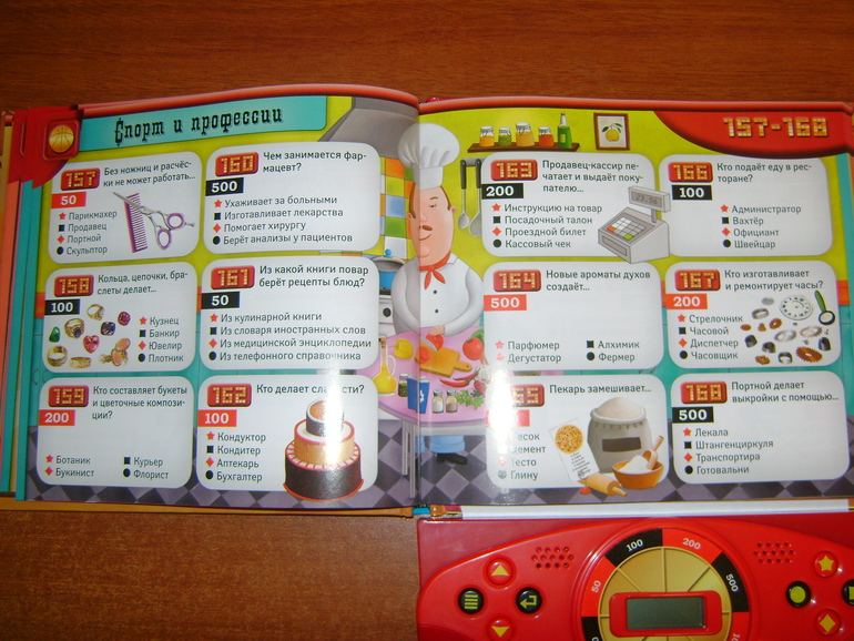 Книга выбирает вопросы самостоятельно,каждый правильно угаданный вопрос приносит балл