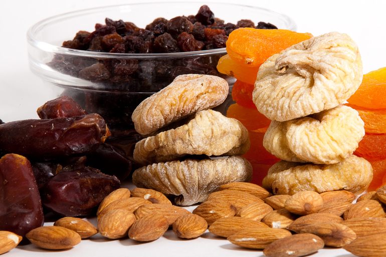 Сухофрукты. Курага, изюм, финики - настоящий кладезь разнообразия, когда хочется вкусненького. Сухофрукты богаты минеральными веществами и улучшают состояние кожи. Однако, их надо грамотно выбирать: сухофрукты и цукаты часто бывают с добавлением сахара, нужно брать обычные вяленые фрукты.