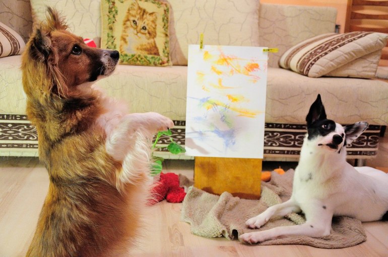 В Симферополе собаки Белка и Малыш рисуют картины, средства от продажи которых идут на поддержку благотворительных организаций. Когда-то эти псы сами были бездомными, теперь их таланты помогают покупать питомцам приютов для животных еду и лекарства.