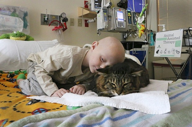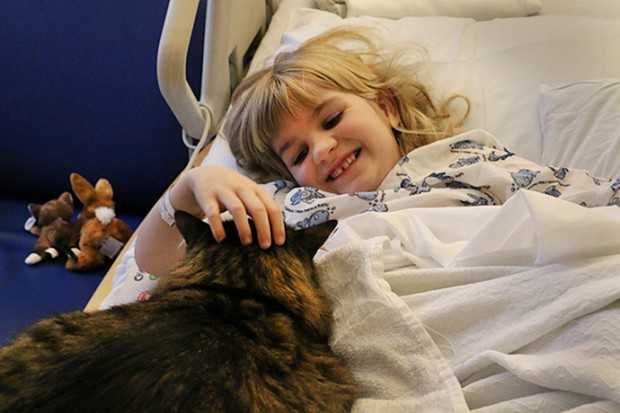 В детских больницах Портленда (США) маленькие пациенты каждый день в течении нескольких минут общаются с лабрадором Паркером, пиренейской горной собакой Роган, тяжелым семикилограммовым котом Геком Финном и другими четвероногими целителями.