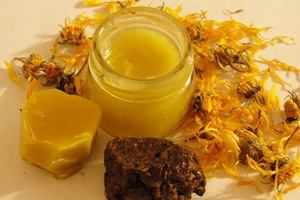 Ингредиенты перемешать и прокипятить на слабом огне в течение двадцати минут. Приготовленное снадобье необходимо процедить в горячем виде. Теплую мазь следует наносить на зудящие и воспаленные участки кожи толстым слоем.