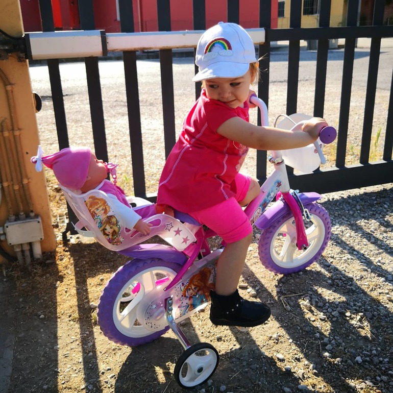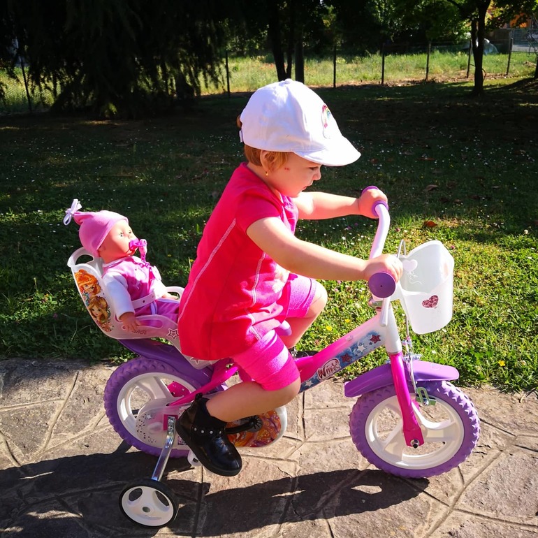 Купили велосипед, довольная такая, гоняет уже быстро. 😄