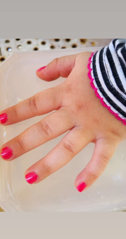 А это наш первый маникюр.