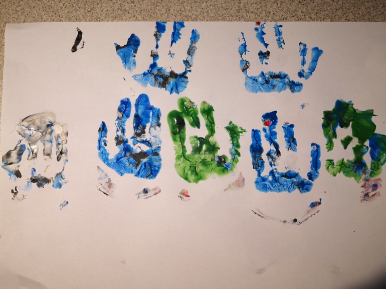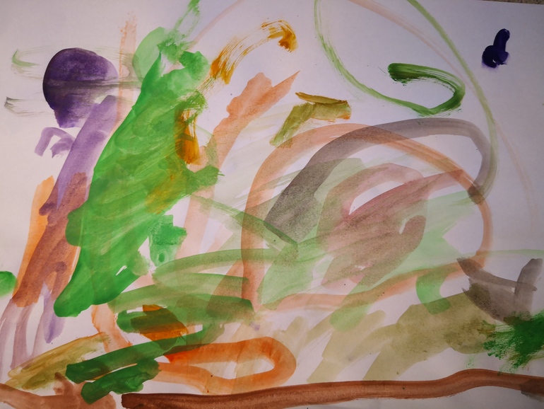 Очень любит рисовать, тем более акварелью и пальчикавыми красками.