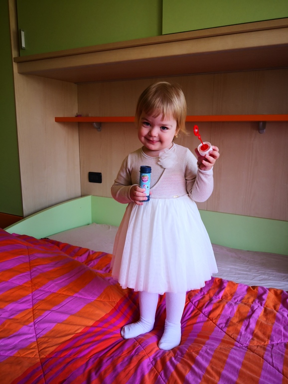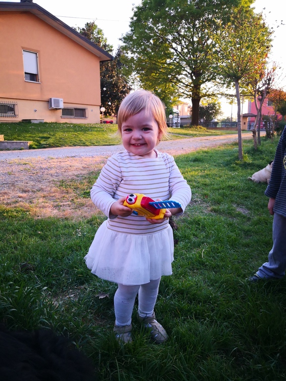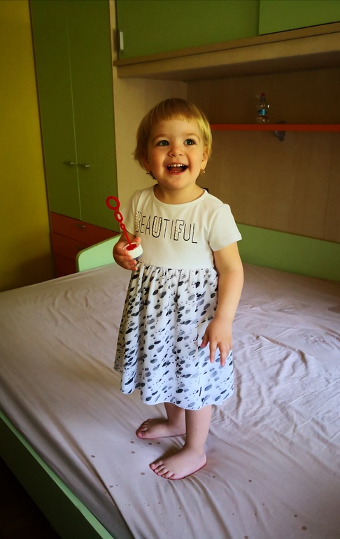 Очень активная девочка. С ней ни на минуту нельзя расслабиться. Не знаю что значит смотреть телевизор, или просто полежать, когда уже сил нет. В последнее время часто капризничает по любой причине. Уффф, сколько терпения и нервов. 🙉Но Алиса намного сообразительнее своих братьев в этом возрасте. Понимает два языка и говорит кое какие предложения на итальянском и на русском языках. Буду упорно стараться говорить с ней только на русском, я вижу, что она быстро схватывает, в этом она просто умничка!