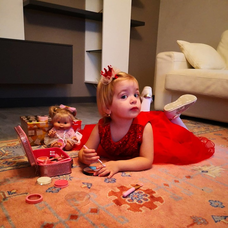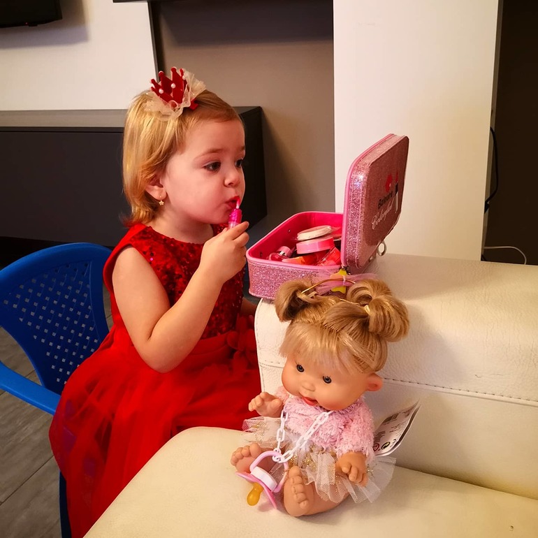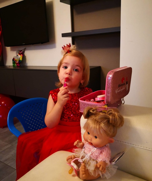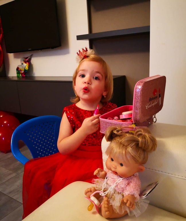 С днем рождения! Такая взрослая уже принцесса, губы красит))) Что-то ты потерялась, как у вас дела?