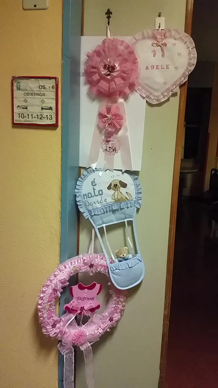 Это наш бант , который я повесила на двери палаты сразу после родов. Покажу вам и другие банты в соседней палате: