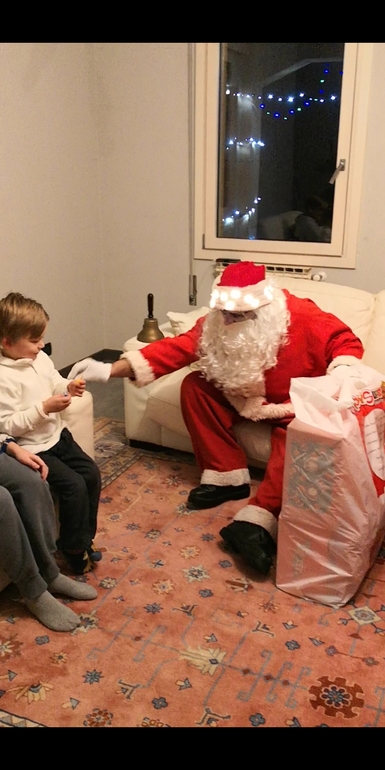 Каждый год , за день до Рождества, к нам приходит Дедушка Мороз. Обходит весь наш посёлок, к нам заходит примерно в 19.00. Совершенно бесплатно. Такая организация нашей провинции. Самого Дед Мороза мы естественно прекрасно знаем, он работает пожарником. Такой шутливый мужичок. И у него очень доброе сердце!!!❤️Вместе с Дед Морозом, приходят и его помощники. Их так много🙈, сама не знаю для чего столько народу. Кто фоткает, кто держит подарки, кто ведёт транспорт и так далее.