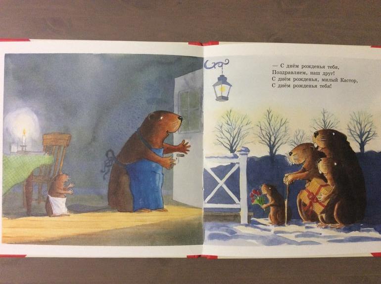 Самой первой вспомнилась именно эта книга. Кастор с Фриппе испекли пирог, которым потом угощали друзей, пришедших поздравить Кастора с Днём рождения. Поздравление мы поем на мотив песни «Happy Birthday to you".