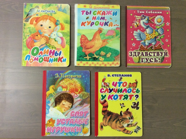 Первые книги, выданные сыну в 4 месяца, как только он начал много времени проводить на животе, были картонными издательства АСТ. Больше всего Илюше из них нравились «Ты скажи нам, курочка» и «Здравствуй, гусь!». Думаю, по фотографии это заметно. Хорошие стихи, милые иллюстрации, невысокая цена. Я даже не рассчитывала, что они «выживут».