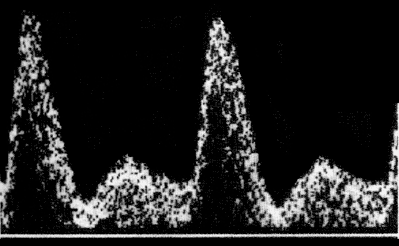 Во время измерения сосудов, на экране монитора будут ловить пульсацию в каждой артерии, и вы будете видеть примерно такую картинку: