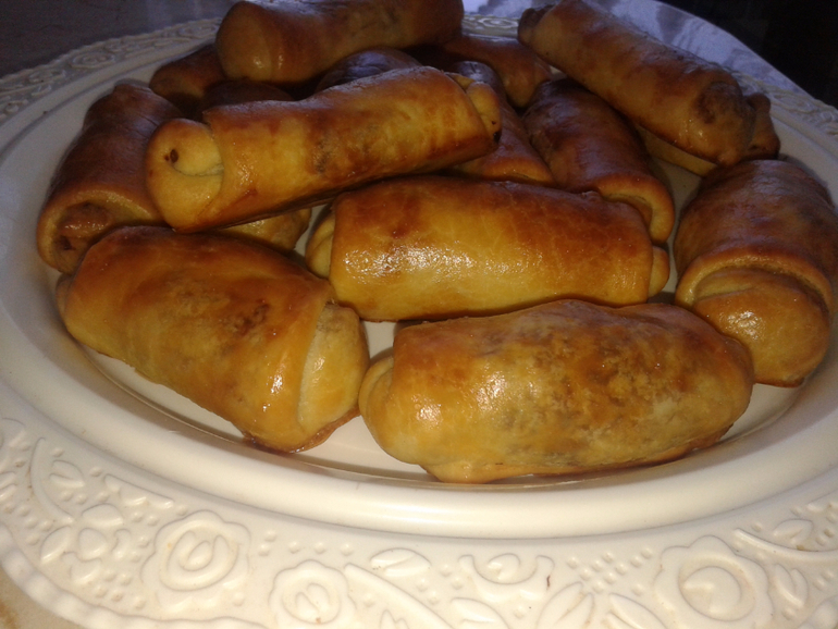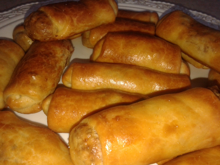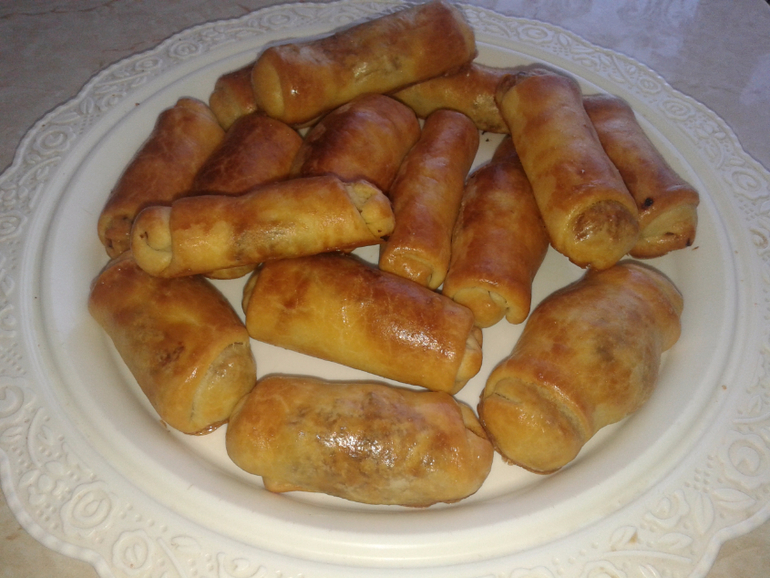 Аккуратно заворачиваем, выкладываем на противень швом вниз