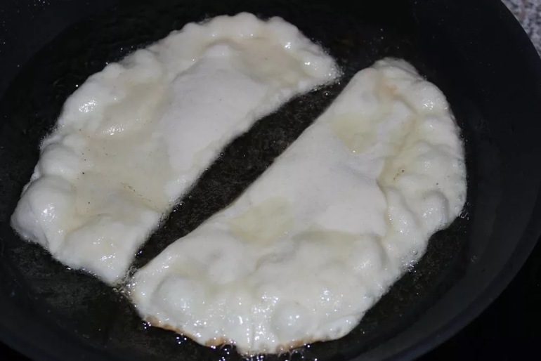 Ну и уже во время жарки видно как они начинают пузыриться. Готовый чебуреки выкладываем сначала на салфетку, что бы убрать лишний жир и скорее едим, хотя и в холодном виде, они тоже очень вкусные.