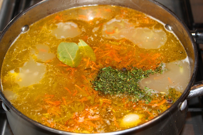 пряную зелень, лавровый лист. Варим в течение нескольких минут (7 - 10 мин.)