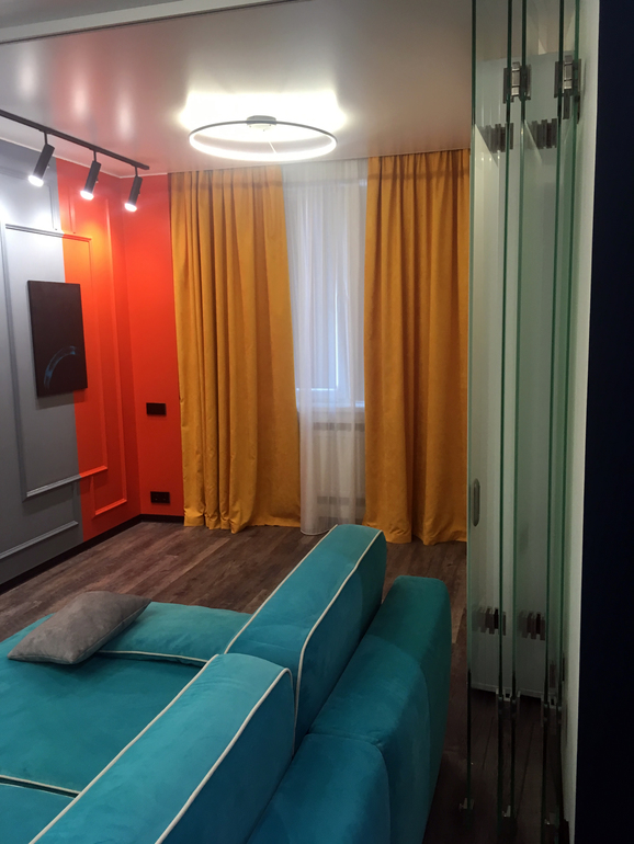 Уверена, что не все оценят дизайн. Проект выполнен для конкретных людей, которым уютно находится в такой ярком интерьера. В этом проекте много интересных моментов, хочу показать, что не надо бояться ярких цветов и экспериментов в интерьере.