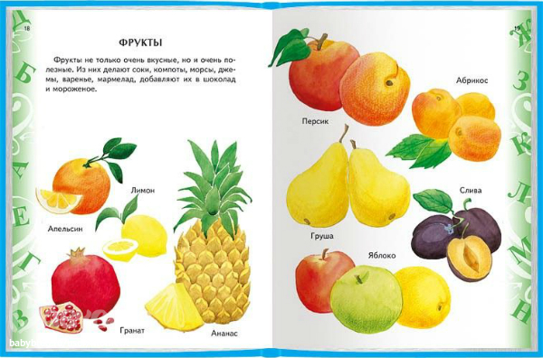Очень удобными первыми книжками могут стать детские энциклопедии для самых маленьких или даже просто распечатанные картинки, собранные в брошюру.