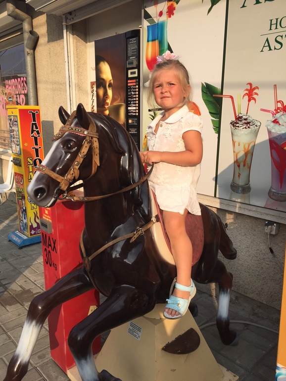 любимая лошадка, не ленится идти 20 минут туда и обратно, хотя вокруг дома полно лошадок-паровозиков