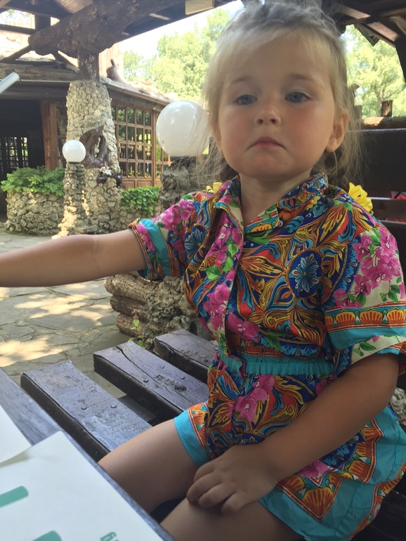 сфотографировались на визу, у Лизаветы косички в кадр не попали, получилась с убранными волосами