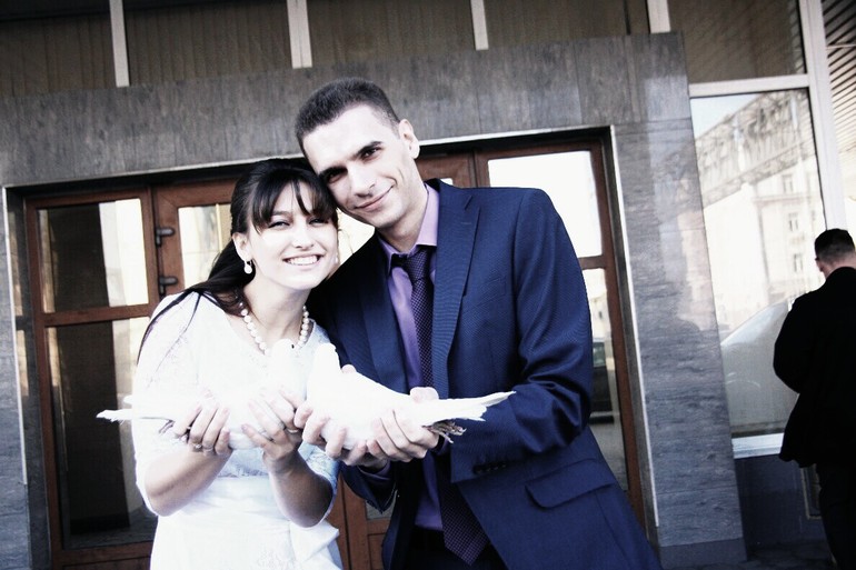 На тот момент когда я первый раз увидела нашего папу в соц.сетях, его зовут Дима, я жила в Казахстане, месяцем ранее до этого я рассталась с парнем, с которым встречалась около 5 лет и уже выбирала платье)) к слову это он меня бросил, проплакав неделю я удалила все совместные фотографии с сетей и вообще все что напоминала о нем, и о чудо, ко мне начали просится в друзья много интересных молодых людей, в их списках и был Дмитрий))) познакомившись и пообщавшись пару суток напролет, он меня очень сильно заинтересовал, у нас много было общего. и вот уже через неделю без прерывного общения мы начали задумываться как нам встретится. и тогда я решила переехать в Россию, под городом Воронежем у меня жили бабушка с дедушкой, вот туда то я и отправилась. и буквально через несколько дней он был тут как тут)) и понеслась душа в рай))) 2 месяца он приезжал ко мне каждую неделю на выходные, а это 1200км туда и обратно!!! и о боги!!! он сделал мне предложение!!!! и это через 3 месяца со знакомства! такого переворота не ожидал никто из моих родственников и друзей и кажется, даже Я!! но я летала на 7 небе, потому что была как никогда счастлива даже эти 2 дня в неделю!и вот через еще 3 месяца мы расписались, так затянули из за документов. я же все таки еще гражданка Казахстана! после свадьбы мы начали задумываться о прекрасном!!! но об этом чуть позже)))
