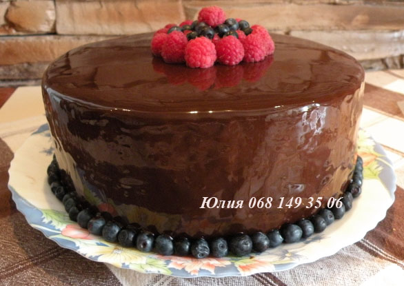 Решила показать еще один свой летний тортик с шоколадной зеркальной глазурью
